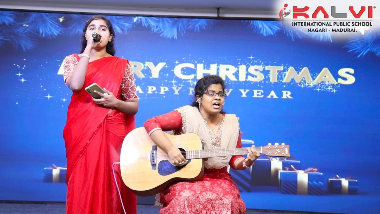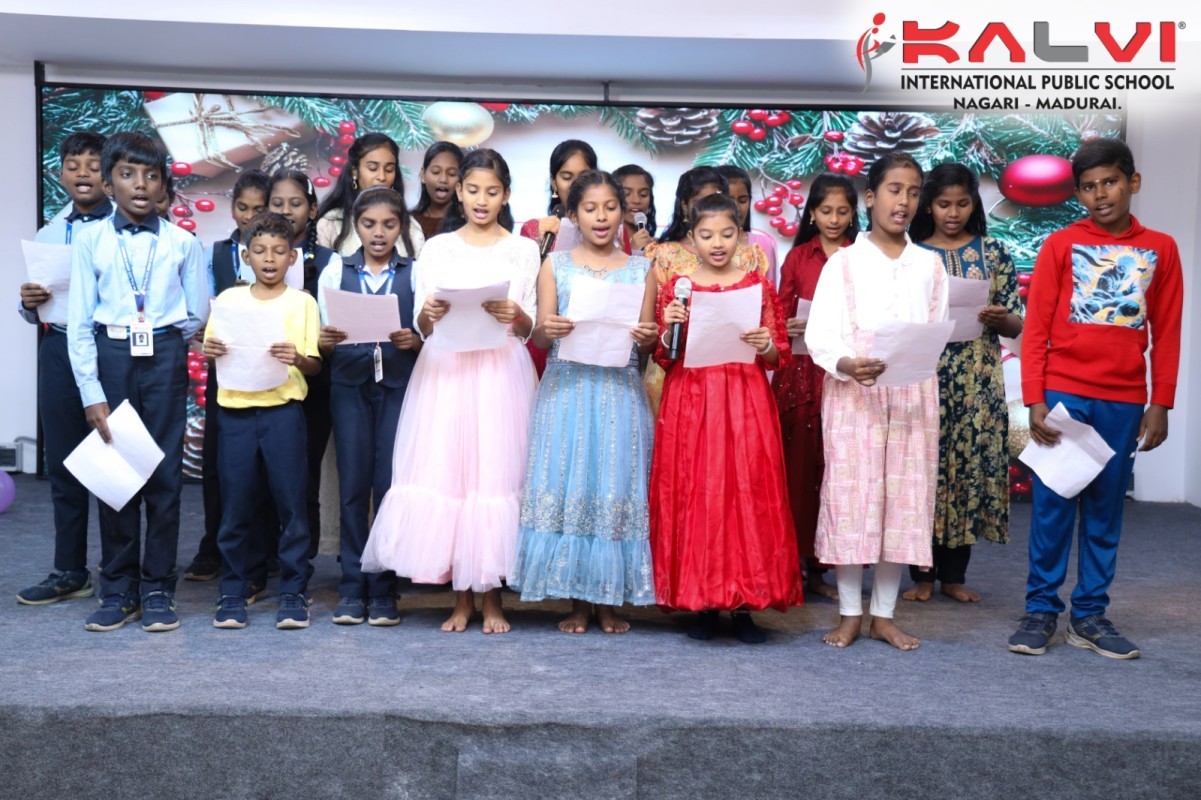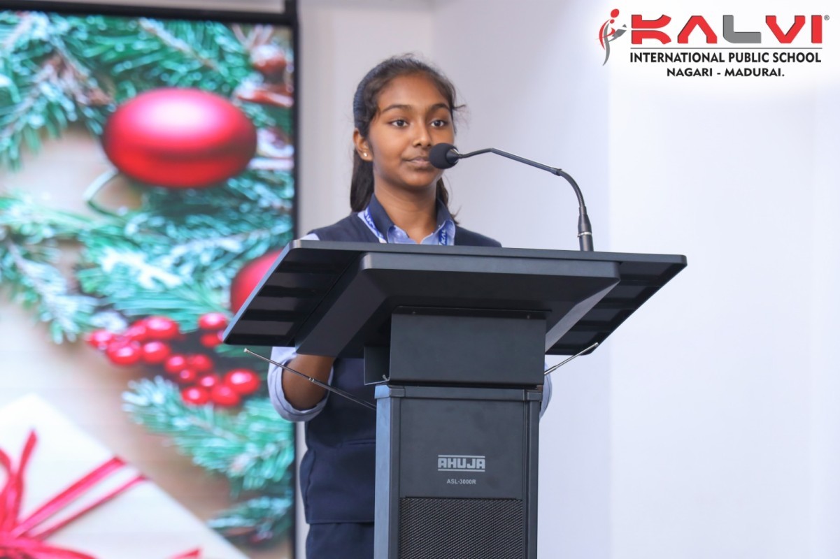 We Kalvians, celebrated Christmas. The celebration began with a warm and graceful welcome speech, extending heartfelt greetings to the dignitaries, teachers, students, and all gathered. It highlighted the essence of Christmas —sharing, kindness, humility, and hope—and set a joyful tone for the celebration.